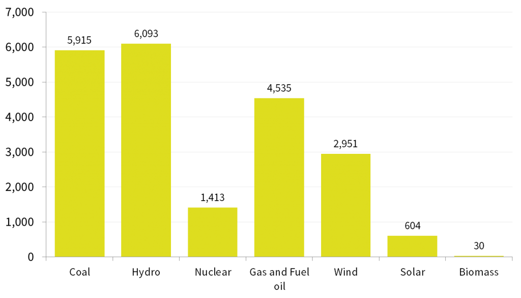 Romania’s electricity mix is one of the most balanced in the EU, with coal, hydropower, fossil gas, nuclear energy and wind power having comparable shares of capacity and power generation.