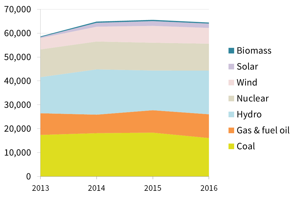 All nuclear and large hydropower, 98 per cent of coal and 73 per cent of fossil gas units are state-owned via the Ministry of Economy, Energy and Business. Decisions to retire or even build new conventional units are therefore primarily in the hands of the Ministry.