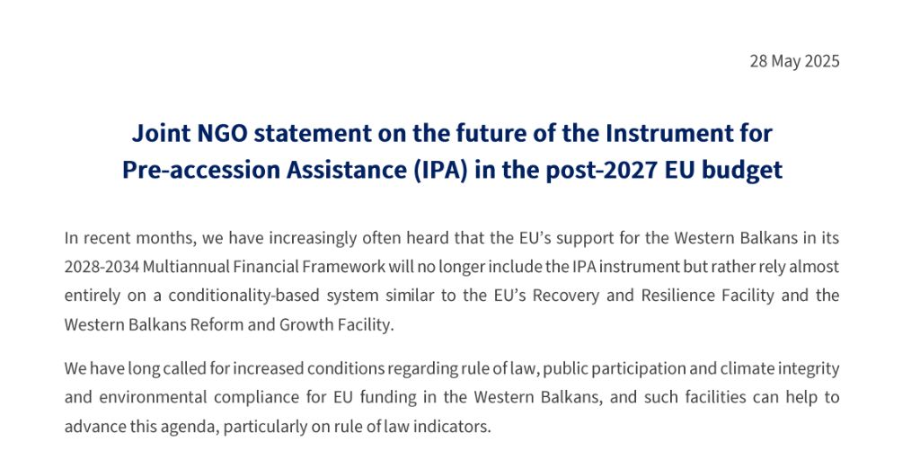 Joint NGO statement on the future of the Instrument for Pre-accession Assistance (IPA) in the post-2027 EU budget
