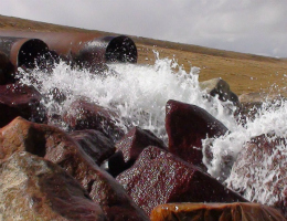 The seasonal glacier melt-waters and the ground water flow into the mine’s open pit at a rate up to 1000 liters/sec [3]. After contact with the rock, the water becomes chemically-degraded and is then pumped out and discharged to the environment.