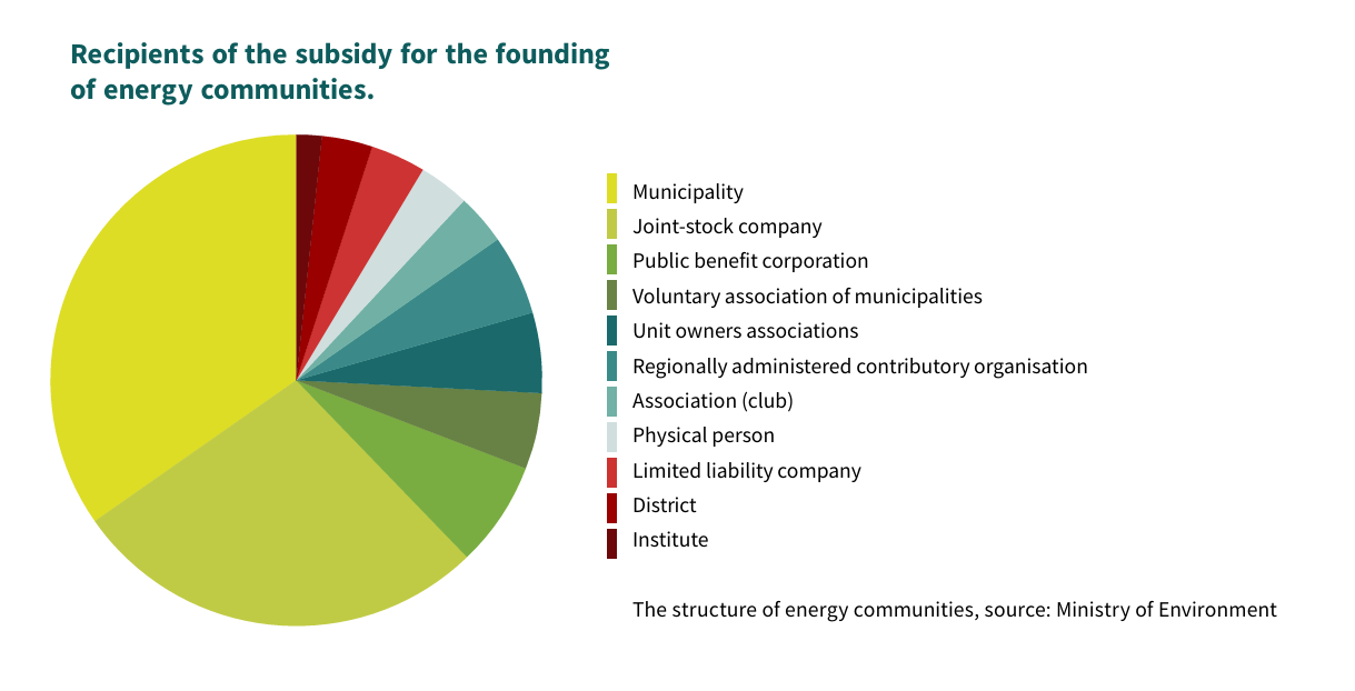 Jagoš points to a peculiarity in the structure of Czech energy communities: ‘At present, we’re seeing the greatest interest coming from small municipalities. In this sense, the Czech Republic is a bit unusual. Elsewhere in Europe, it’s mostly driven by individuals at the forefront of community energy.’ Municipal involvement is also reflected in statistical data on subsidy recipients for energy communities.